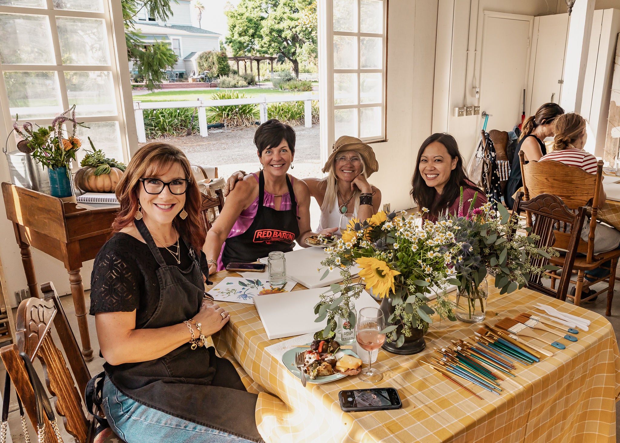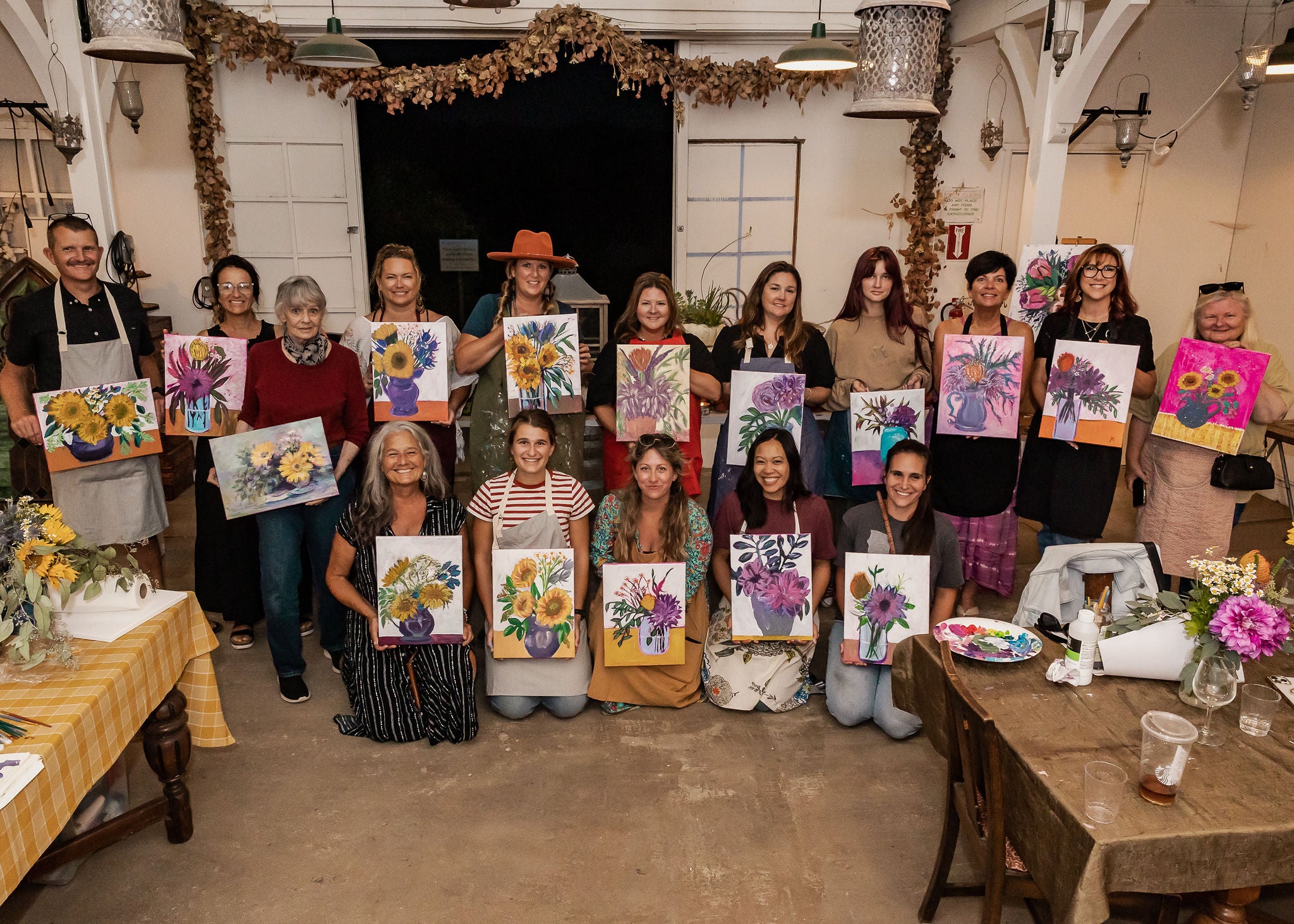 After painting, we gather to enjoy an incredible farm-to-table meal, thoughtfully harvested and prepared by Chef Laina using the freshest ingredients grown right here at Falkner Farms.