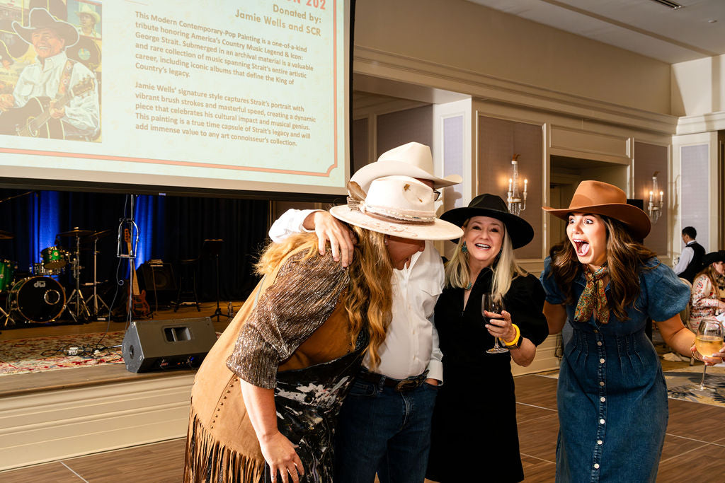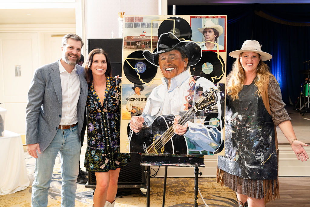 At the 2025 Stoney Creek Ranch Gala, Jamie Wells took the stage once again to create an electrifying live painting—this time honoring the legendary George Strait. With her signature pop-art style, Jamie blended bold color, texture, and storytelling into a striking portrait that celebrated Strait’s unparalleled influence on country music.