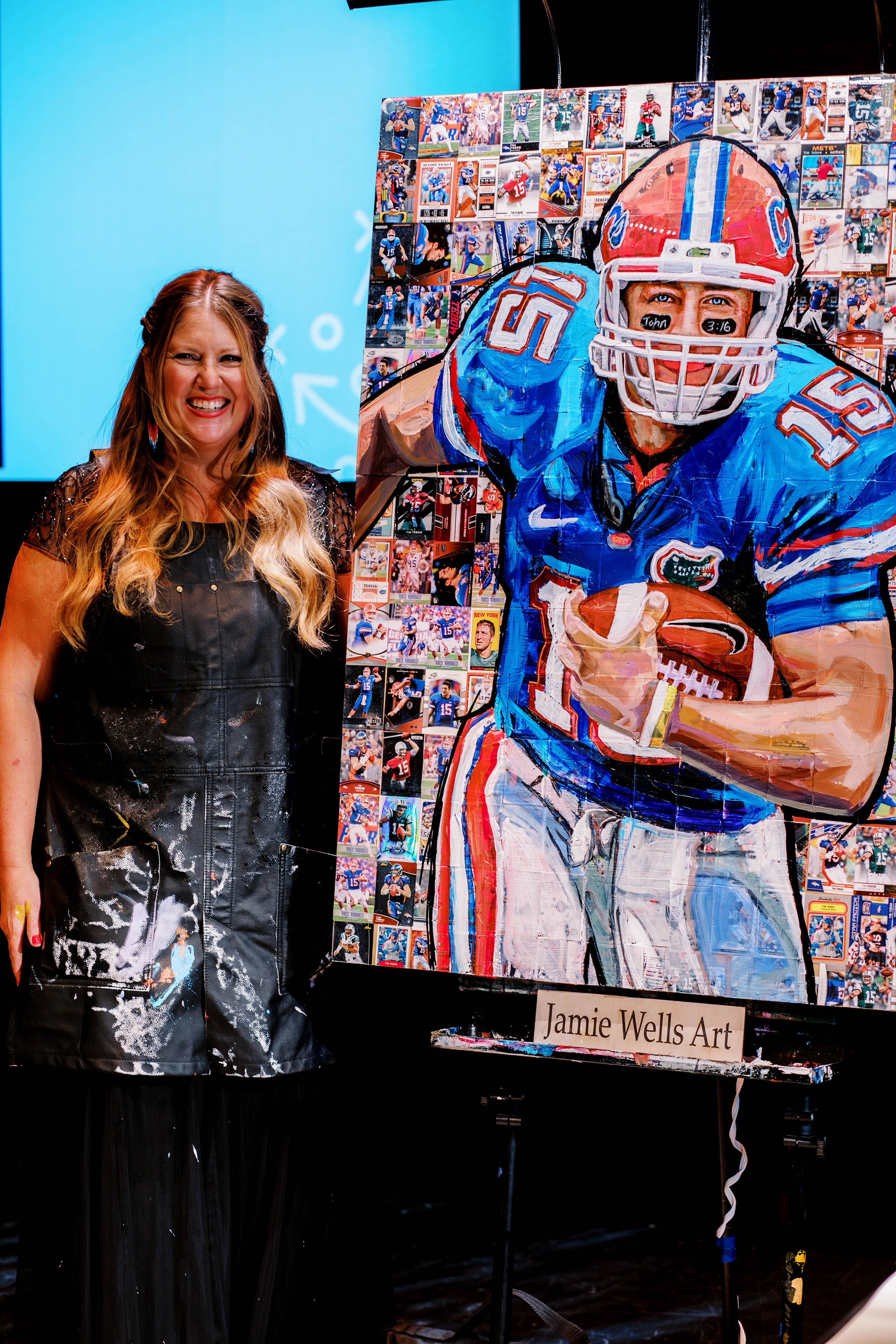 At the My Life Speaks Gala, Jamie Wells brought the energy of live painting to life with a powerful, pop-art portrait of sports icon Tim Tebow. As guests looked on, Jamie transformed the canvas into a vivid, expressive tribute—layering color, movement, and heart into every brushstroke.
